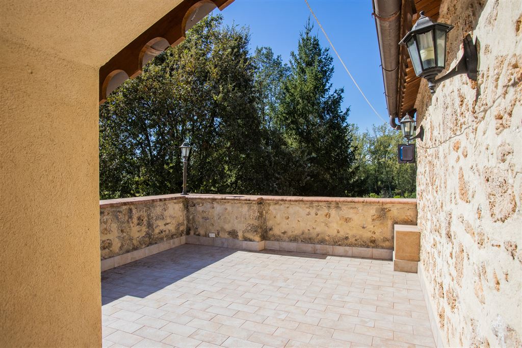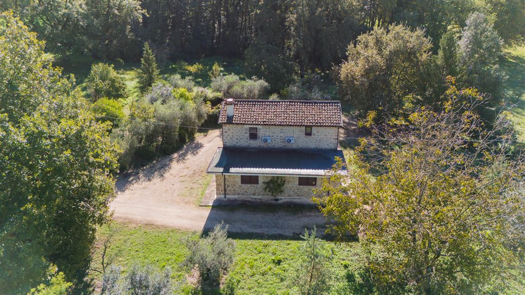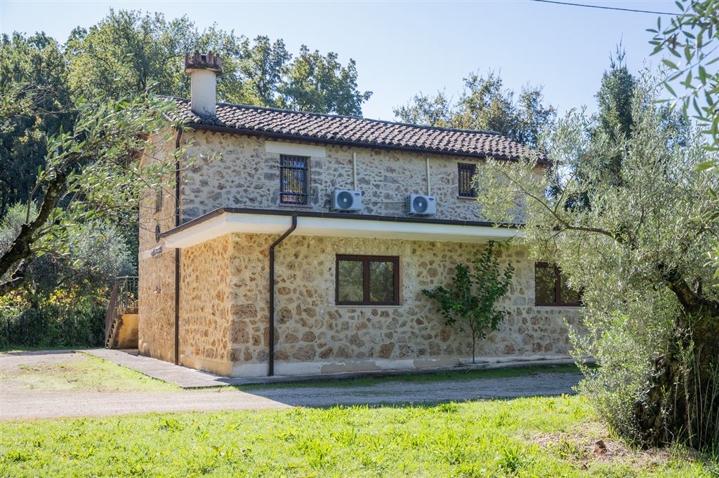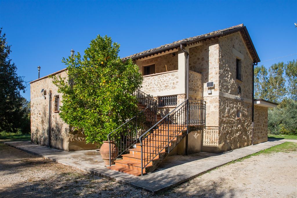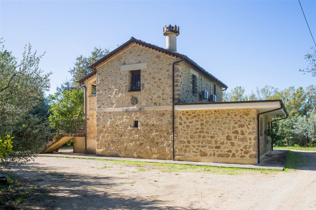 La corte del casolare è ricca di piante ornamentali, piantumate con logica oltre che con gusto ed attenzione. Si può passeggiare agevolmente per l’intera proprietà che si arricchisce di svariate piante di ulivo oltre che di una parte boschiva, con diverse querce secolari ultracentenarie. Tutto il terreno, compreso del fabbricato, supera abbondantemente i 5 ettari. E’ completamente recintato, oltre ad avere l’accesso direttamente dalla via comunale. Internamente al lotto è stato realizzato un pozzo artesiano, che permette di irrigare agevolmente ed abbondantemente i terreni grazie ad un ingegnoso e funzionale sistema di irrigazione, pienamente funzionante.