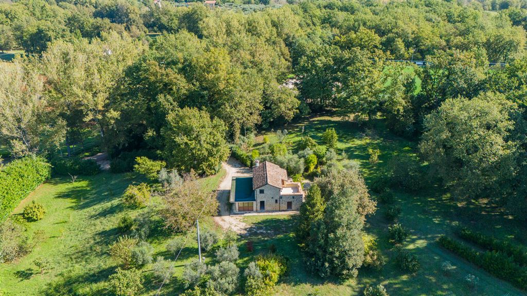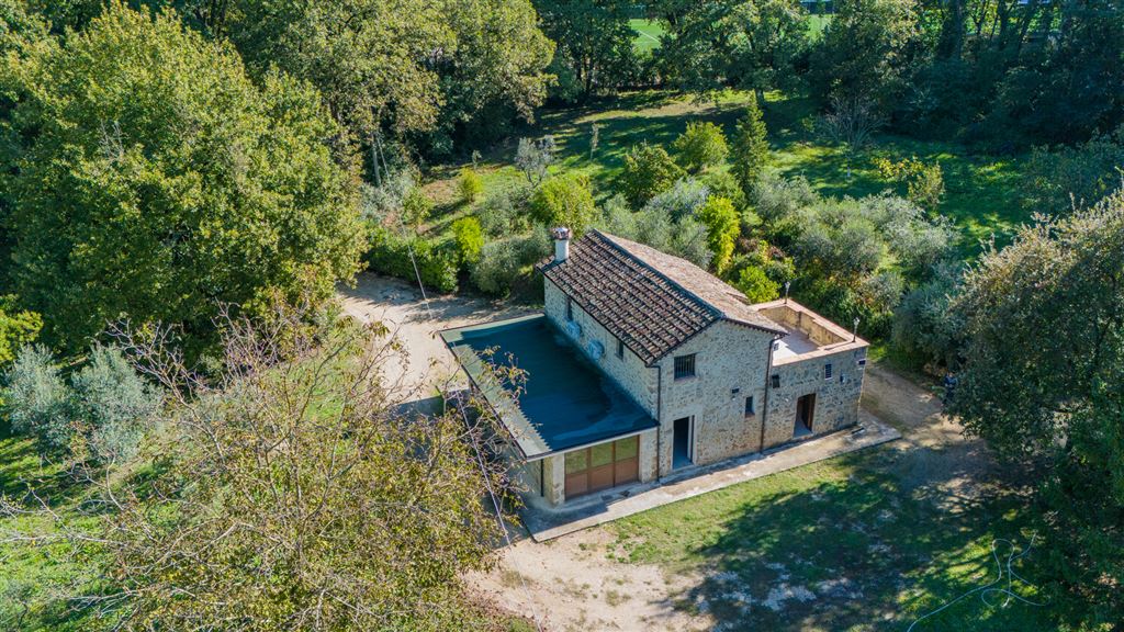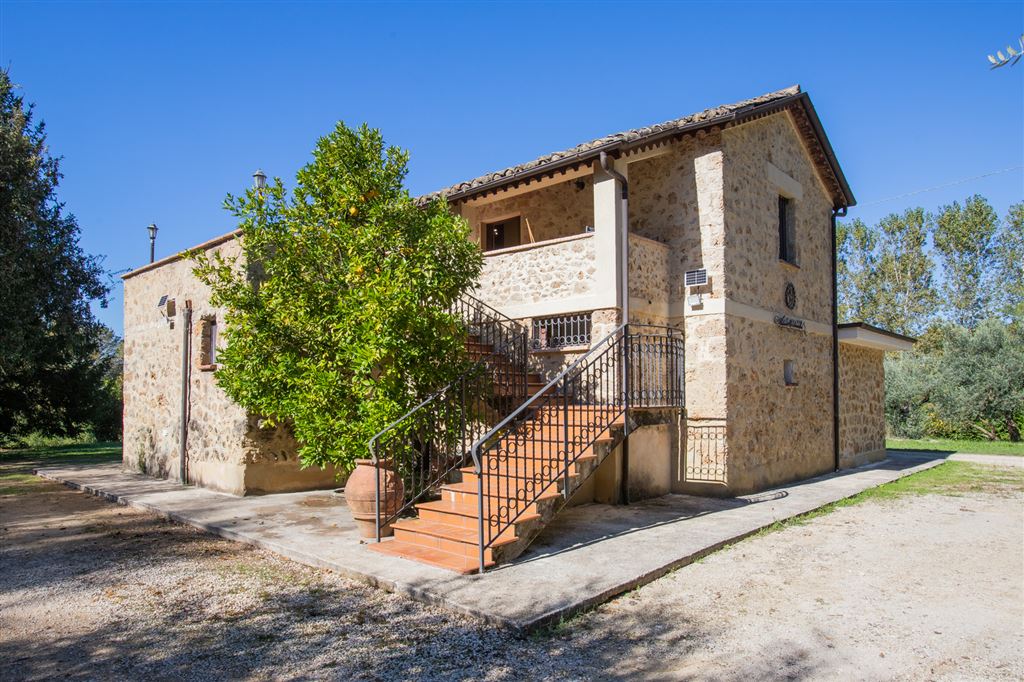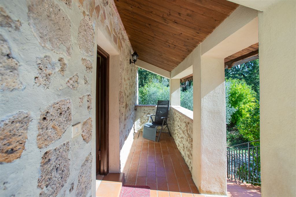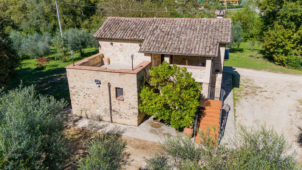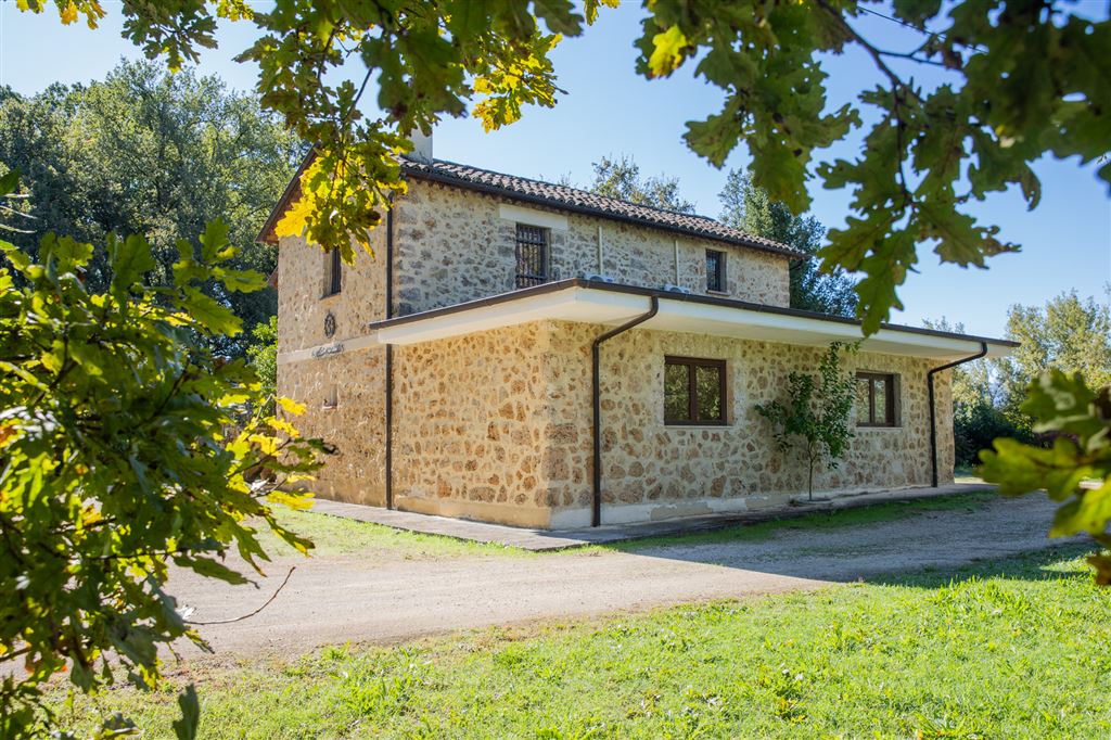 La corte del casolare è ricca di piante ornamentali, piantumate con logica oltre che con gusto ed attenzione. Si può passeggiare agevolmente per l’intera proprietà che si arricchisce di svariate piante di ulivo oltre che di una parte boschiva, con diverse querce secolari ultracentenarie. Tutto il terreno, compreso del fabbricato, supera abbondantemente i 5 ettari. E’ completamente recintato, oltre ad avere l’accesso direttamente dalla via comunale. Internamente al lotto è stato realizzato un pozzo artesiano, che permette di irrigare agevolmente ed abbondantemente i terreni grazie ad un ingegnoso e funzionale sistema di irrigazione, pienamente funzionante.